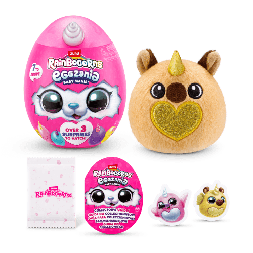 Life’s always sunny side up in Eggzania! Your new baby Eggzanias feature glittery hearts on their tummies, adding a magical sparkle. Collect all seven super soft, cuddly plushes, and mark them off on your collector’s guide. Can you discover the rare Baby Eggzania? Rainbocorns are the ultimate surprise eggs, blending mystery unboxing with quirky surprises. In Rainboville, magic unfolds with every egg, and the excitement never stops!